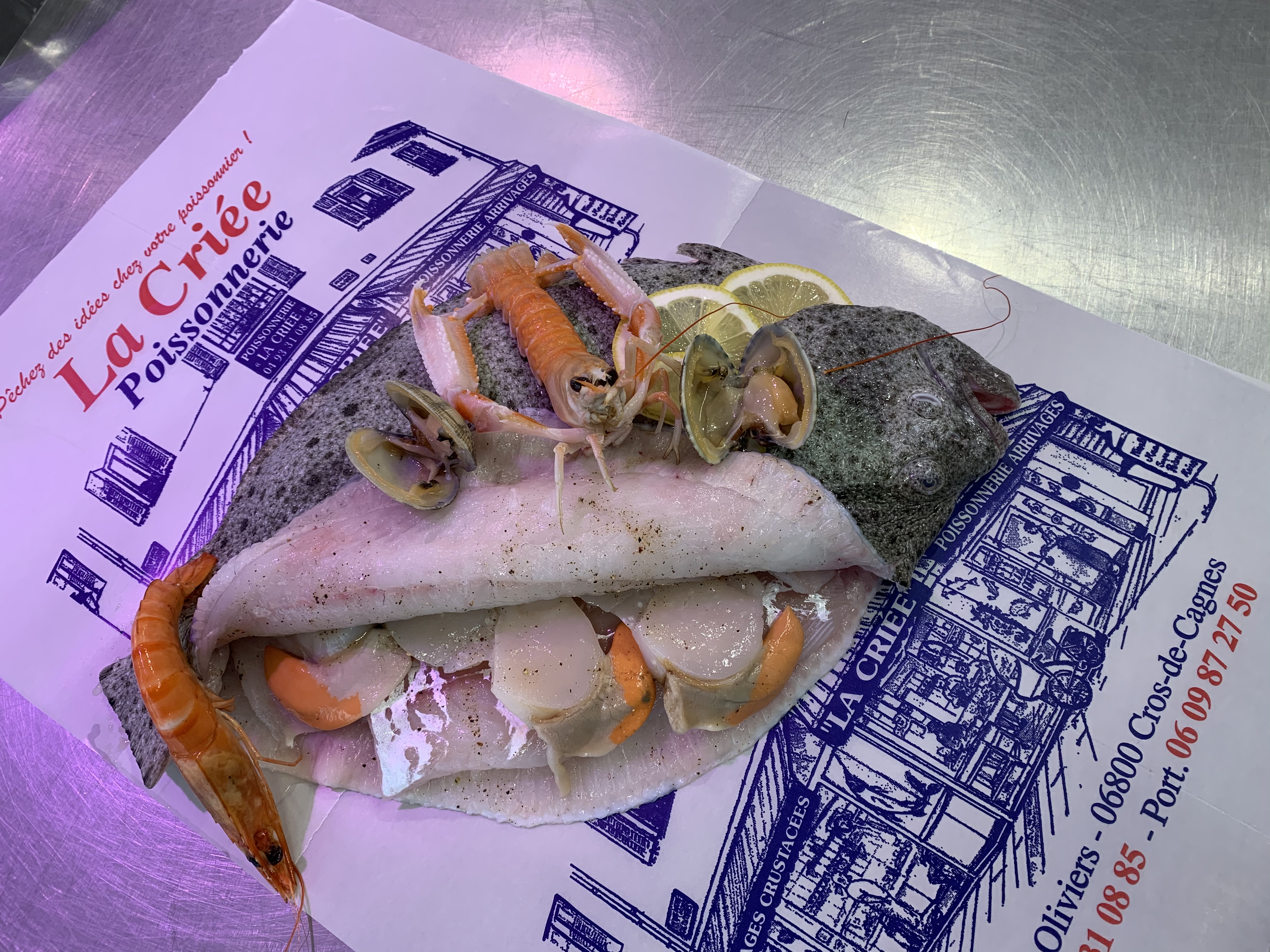 Vous souhaitez commander un plateau de fruits de mer, du poisson ou un de nos plats maison ? Contactez-nous au 04 93 31 08 85 ou par mail à mariepruscini@icloud.com. Vous pouvez aussi vous renseigner sur la disponibilité à La Criée de certains produits comme nos huîtres ou nos palourdes.
